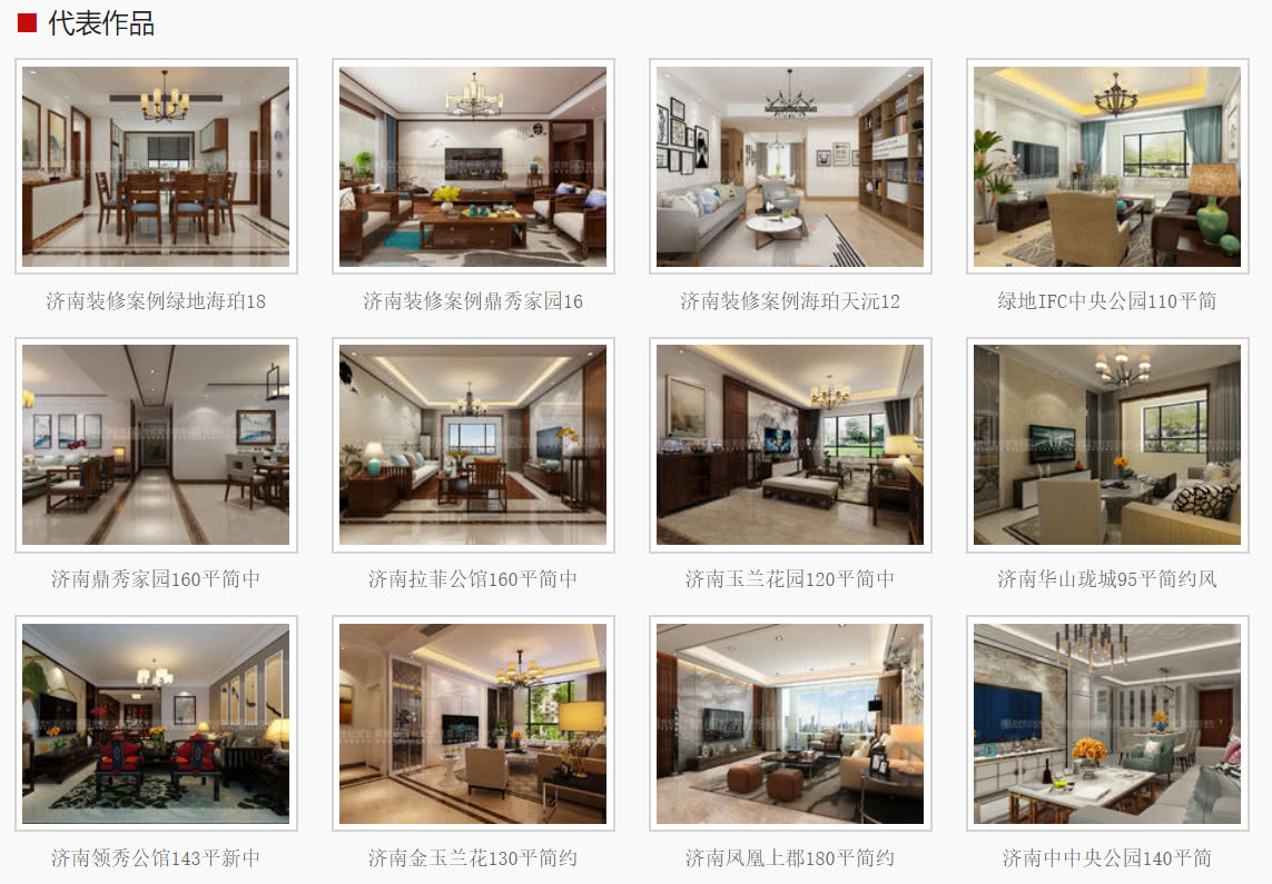 代表作品:奥龙观邸,金碧天下,历山名郡,保利大明湖,保利花园,绿地海珀天沅,漫山香墅,拉菲公馆,汇福山庄,隆悦公馆,保利海德公馆等;