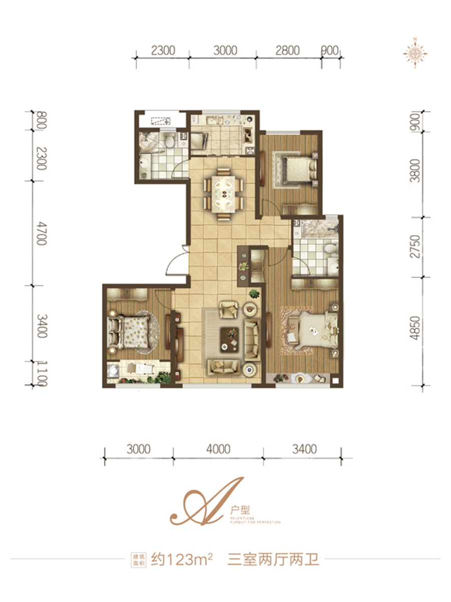 3室2厅2卫 (建面123.0m²)