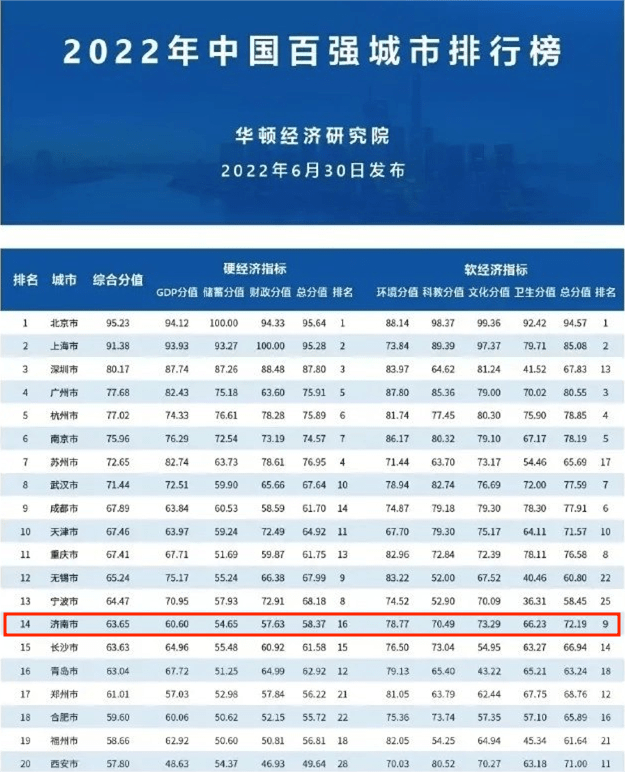 济南位列全国第14,山东首位!2022年中国百强城市排行榜发布