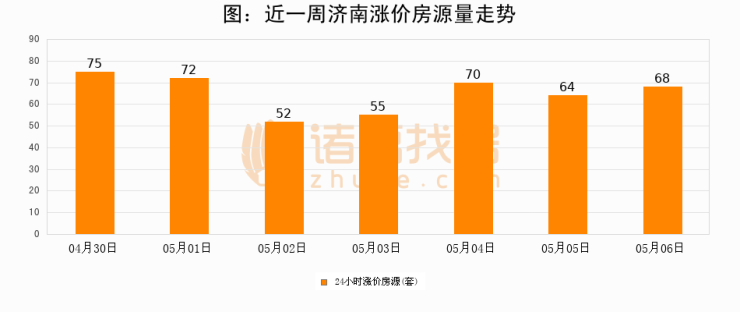 根据诸葛找房数据显示,济南24小时涨价房源量为68套,较05月05日增加4套,环比上涨6.2%。与此同时,涨价房源占比小幅扩大,业主信心有所提升。