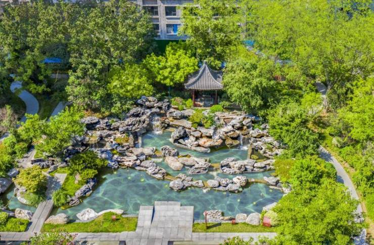 下午阳光正好,暂别繁忙的工作,归家瞰见万方苏氏园林,三进门庭礼序,尊荣归家排场,沿地势序列排布的假山叠水映入眼帘,亭台绿岛环绕,精选植物配置,一步一景一园林,春华秋实,院藏四季美好,让归家变成一次观景旅行。