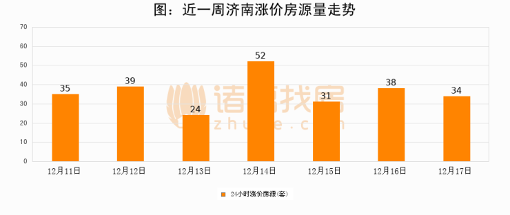 根据诸葛找房数据显示,济南24小时涨价房源量为34套,较12月16日减少4套,环比下降10.5%。与此同时,涨价房源占比小幅回落,对于购房者来说是一个入市窗口期,购房者可抓住时机入市。