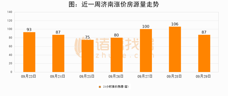 根据诸葛找房数据显示,济南24小时涨价房源量为87套,较09月28日减少19套,环比下降17.9%。与此同时,涨价房源占比小幅回落,对于购房者来说是一个入市窗口期,购房者可抓住时机入市。