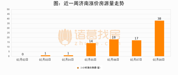 根据诸葛找房数据显示,济南24小时涨价房源量为38套,较02月07日增加21套,环比上涨123.5%。与此同时,涨价房源占比小幅扩大,业主信心有所提升。