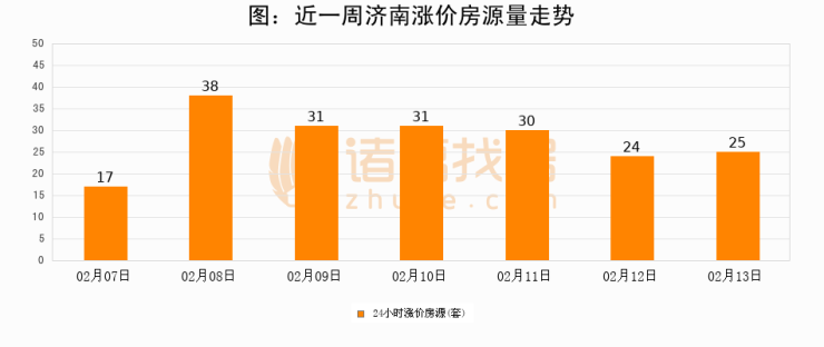 根据诸葛找房数据显示,济南24小时涨价房源量为25套,较02月12日增加1套,环比上涨4.2%。与此同时,涨价房源占比小幅扩大,业主信心有所提升。