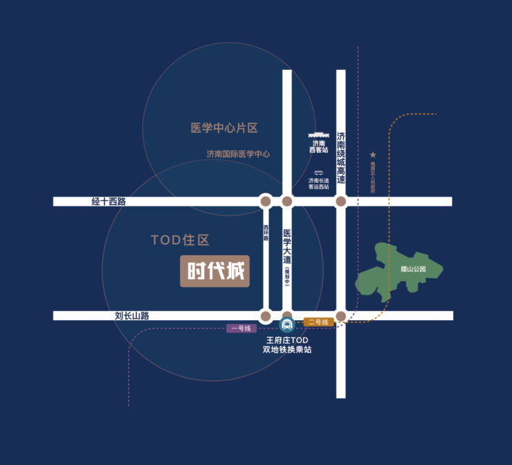 作为海信地产携手中梁地产布局槐荫区的首部作品,时代城从共建美好城市出发,回应城市TOD理想人居的向往,择址王府庄片区健康智慧生活实践区,打造约32万方未来生活城,给予时代生活更丰富的享受方式,回应这座城市的全新期待。