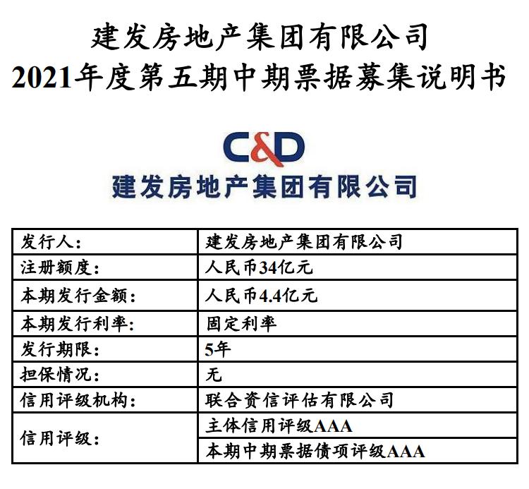 北京金融资产交易所11月16日信息显示,建发地产拟发行2021年度第五期中期票据,发行金额4.4亿元,发行期限5年。