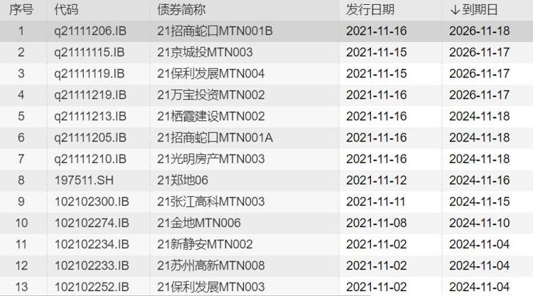 11月11日,保利发展披露2021年第四季度中期票据发行方案,计划发行金额20亿元,期限5年。