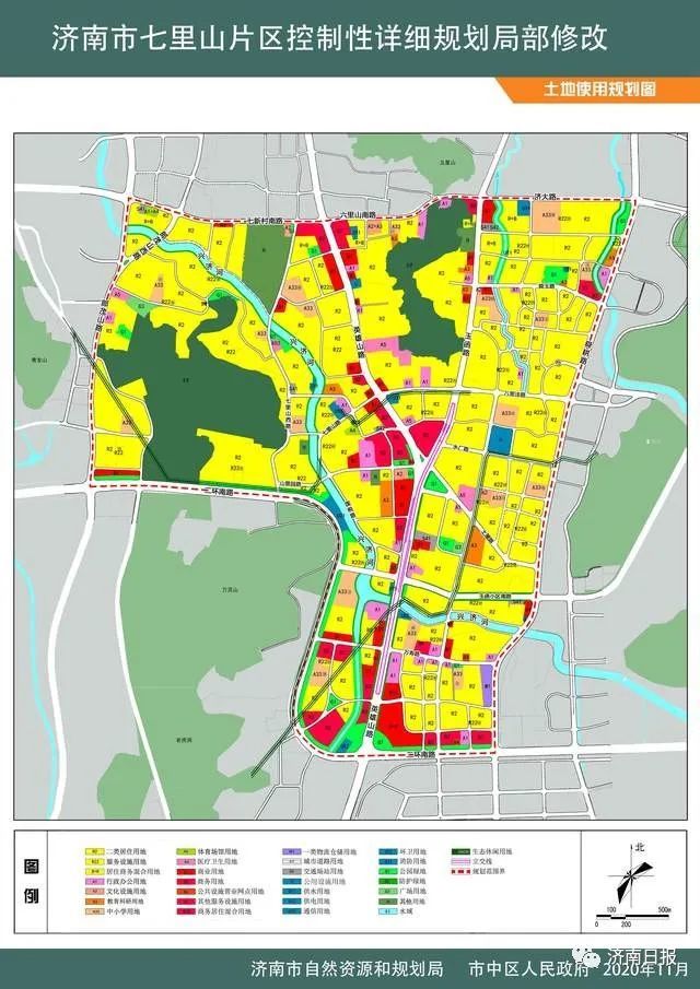 七里山片区控制性详细规划局部修改:七里山片区位于市中区中部,西至郎茂山路,东至舜耕路,北至二七新村南路,南至二环南路,总用地面积约9.14平方公里。片区控规成果与2016年7月21日经市政府审批并公布。