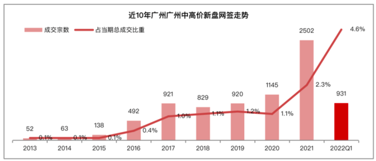 新房方面,克而瑞数据显示,5月广州超10万元/平方米的一手房源网签成交了189套,环比大增894.74%(4月份仅成交19套);另外8万-10万元/平方米的一手房源合计网签成交149套,环比大增71.26%。