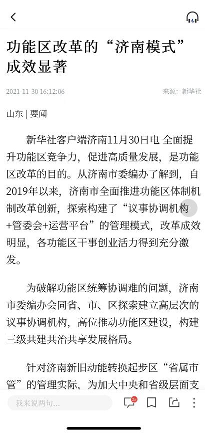 新华社点赞济南:功能区改革的“济南模式”成效显著