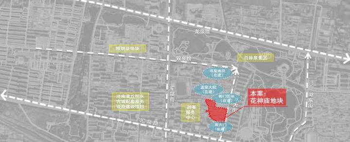 花神庙地块位于明水古城西南侧,项目建设用地29003.53平米,总建筑面积17001平米,全部为地上建筑,地上容积率为0.59万平每公顷,建筑密度为37%,配建变电所、消控室等。