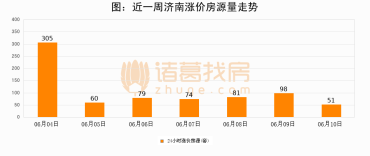 根据诸葛找房数据显示,济南24小时涨价房源量为51套,较06月09日减少47套,环比下降48%。与此同时,涨价房源占比小幅回落,对于购房者来说是一个入市窗口期,购房者可抓住时机入市。