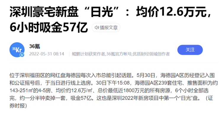 一分半钟卖掉1600万,6个小时57亿的房子被一扫而空,深圳购买力的上限再次被刷新。