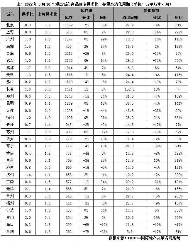 根据克而瑞的统计,5月30个监测城市预计成交面积为1318万平方米,同比下降59%,其中一线城市5月单月成交134万平方米,环比下降22%,同比回落50%,上海受到疫情影响,环比大降了97%。
