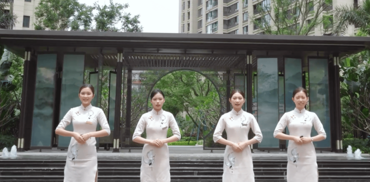 在福州春江天玺,管家们把日常工服换成了旗袍,在小区大门口恭迎考生家庭,寓意“旗开得胜”。