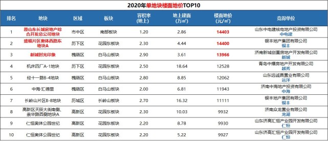 地价决定着房价,2020年住宅楼面价TOP10中,和谐商圈和高新万达商圈为热门成交区域