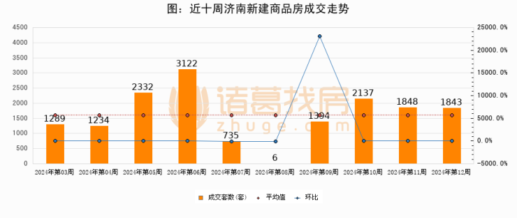 进入2024年第11周(03月11日-03月17日),济南新建商品房成交1843套,较上周减少5套,环比下降0.3%