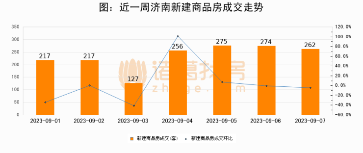 【济南成交日报】09月07日新房成交262套;涨价房源41套