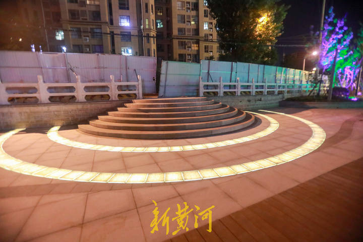 这段工商河开埠文化风貌带除了环境升级改造之外,还增加了投影灯光秀。锦鲤、荷花、蝴蝶、花朵等元素的投影灯光铺满整个步行道。还有泉水主题的灯光秀也格外吸睛,石湾泉、酒泉、 湛露泉、满井泉等泉水名字组成的灯光字体投射到地面,好看又有新意。(新黄河)