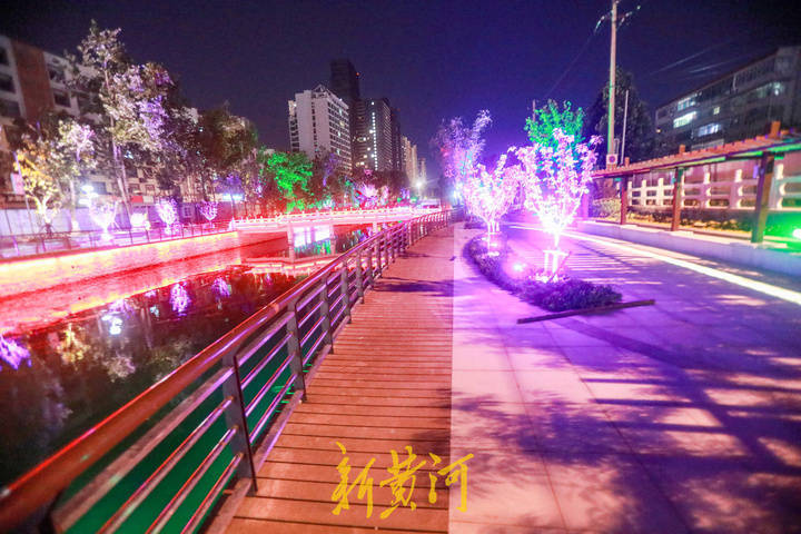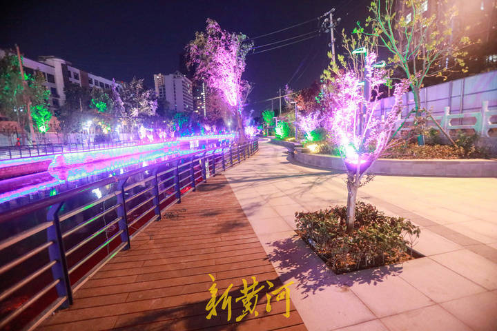 河道两侧新铺设了步行道,安装了铁制护栏和仿古路灯。同时增加苗木、花卉的种植数量,扩大绿化带面积,并在河道上增加了连接河堤两岸的观景平台。目前已进入灯光调试阶段,预计六月初对外开放。