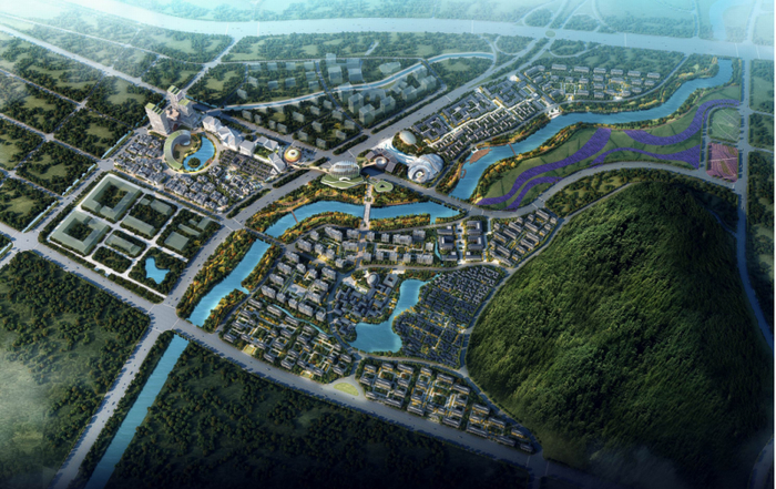 项目规划总用地面积约1800亩,将以现有山水地貌,构建扁山鹊水规划格局,形成西区中医药智慧药房产业区、北区名老中医数字化传承与中医文化展示交流区、南区生态康养产业区三个片区。项目主要围绕“国际智慧医养标杆、全域生态康养胜地、现代健康示范城市”的战略定位,以“智慧医疗、文化交流、生态康养”为主题,实行“研-学-产、医-养-康”一体化发展。