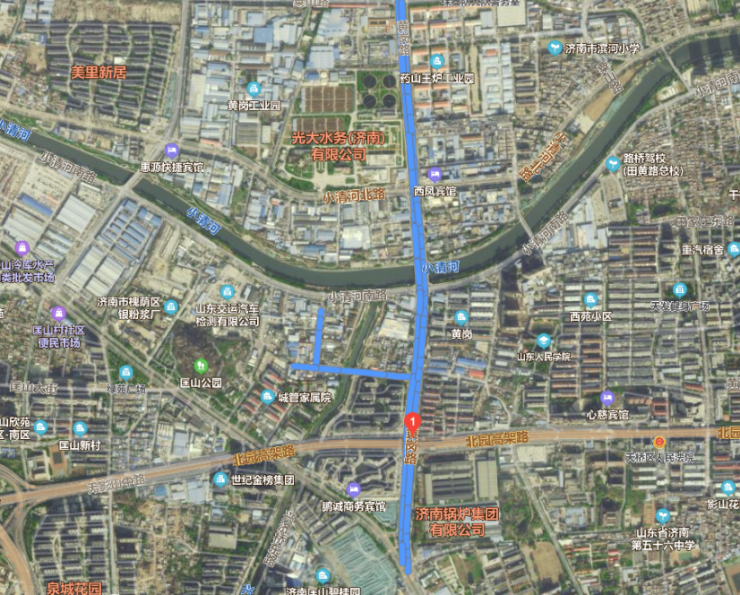 蓝翔路南起小清河北路,北至二环北路,全长2958米,是连接清河北路和二环北路的重要交通干道之一。