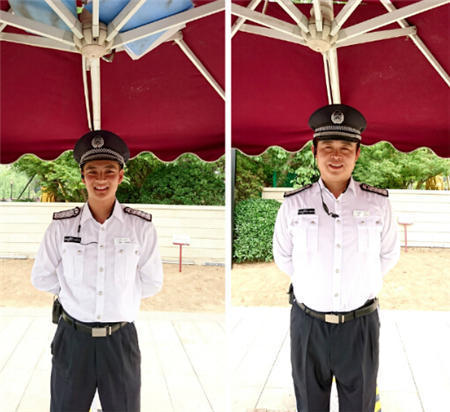 保洁大姐在修理花草,看见我过来,她们竟放下手头工作,对我微笑鞠躬并说了一句“欢迎回家!”。