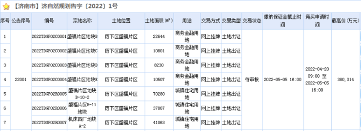 2022年济南排名前列批土拍结果出炉!21宗地块成交,14宗流拍