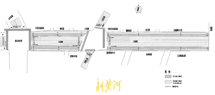 车站施工总工期约58个月,本次分两期实施绿迁、新建导改道路及管线迁改施工,时间为2022年4月2日至2023年4月2日,共12个月。一期实施绿迁及新建导改道路,施工主要对工业南路(山大南路至华信路)南北两侧部分绿化带、非机动车道及人行道进行围挡施工,施工期间将占用工业南路南北两侧非机动车道和人行道,工业南路机动车道数量不变;二期实施管线迁改,施工期间分两阶段占用工业南路北侧机动车道(七里河路口围挡临时进行东西倒边),工业南路机动车道数量不变,行人及非机动车两侧通行。