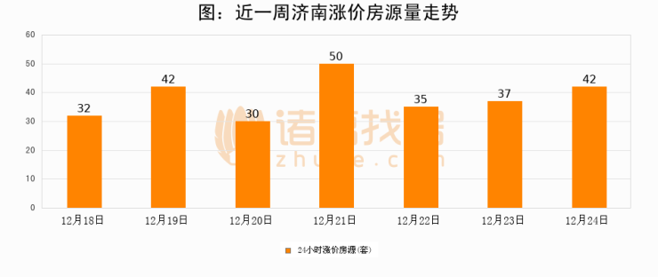 根据诸葛找房数据显示,济南24小时涨价房源量为42套,较12月23日增加5套,环比上涨13.5%。与此同时,涨价房源占比小幅扩大,业主信心有所提升。