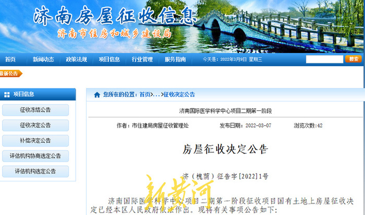 近日,槐荫区政府发布房屋征收公告,决定对济南国际医学科学中心二期排名前列阶段房屋征收项目红线范围内国有土地上房屋实施征收。征收范围为:东至纵三路(支纵六路),西至纵二路(南北三号路),南至横二路(济齐路),北至济齐路(次横一路)。
