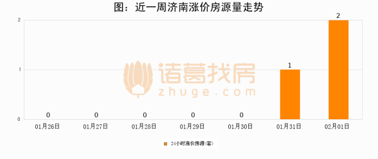 根据诸葛找房数据显示,济南24小时涨价房源量为2套,较01月31日增加1套,环比上涨100%。与此同时,涨价房源占比小幅扩大,业主信心有所提升。