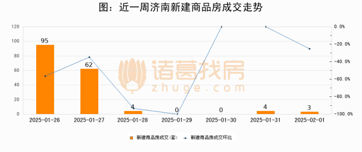 根据济南市住房和城乡建设局数据显示,2025年02月01日济南新建商品房成交3套,较昨日减少1套,环比下降25%