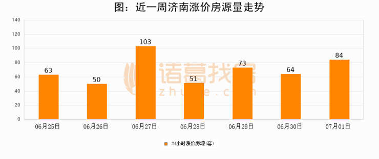 根据诸葛找房数据显示,济南24小时涨价房源量为84套,较06月30日增加20套,环比上涨31.2%。与此同时,涨价房源占比小幅扩大,业主信心有所提升。