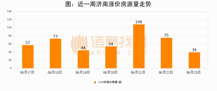 根据诸葛找房数据显示,济南24小时涨价房源量为39套,较06月22日减少36套,环比下降48%。与此同时,涨价房源占比小幅回落,对于购房者来说是一个入市窗口期,购房者可抓住时机入市。