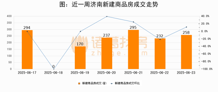 【济南成交日报】06月23日新房成交258套;涨价房源39套