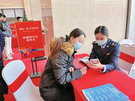 记者了解到,济南高新区税务局与不动产部门共同推动“交房即办证”工作开展,大力促进不同部门间信息共享,把服务做到家,让房主享受到“一手收房、一手拿证”的便利。自推行以来,高新税务与不动产部门积极联动,多次开展上门服务,2021年的最后一周,高新税务安排工作人员来到碧桂园凤凰中心小区交房现场,进行政策宣传、业务咨询,辅导纳税人网上缴纳税款,保证纳税人在元旦前拿到证书。纳税人通过电子税务局完成网上缴纳税费,不动产登记部门查询到其完税情况后,即刻办理产权证书。