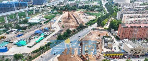 胶济铁路至工业北路道路工程在济南奥体西路北延施工现场展开施工,全长约1.42公里,预计年底完工。施工内容包括道路、排水、交通、管线综合、桥梁、铁路桥涵、绿化及照明工程。