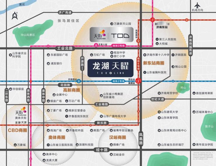 择址于济南新东站旁,以交通为导向打造“三芯一路”城市发展格局,集区域金融中心、总部聚集中心、区域创新中心于一体,被定位为“城市次中心”,打造济南较高规格的TOD样板。