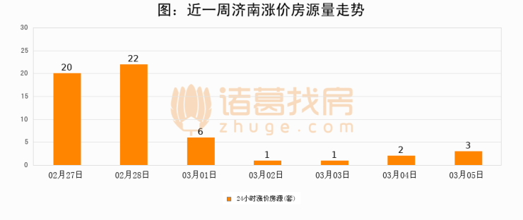 根据诸葛找房数据显示,济南24小时涨价房源量为3套,较03月04日增加1套,环比上涨50%。与此同时,涨价房源占比小幅扩大,业主信心有所提升。