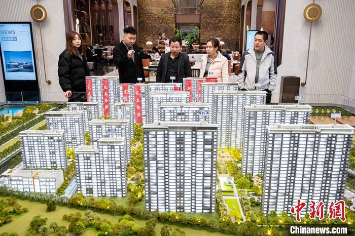 图为3月7日,太原一家房地产公司新开楼盘吸引购房者关注。 中新社记者 韦亮 摄