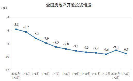1—3月份,全国房地产开发投资22082亿元,同比下降9.5%(按可比口径计算,详见附注6);其中,住宅投资16585亿元,下降10.5%。