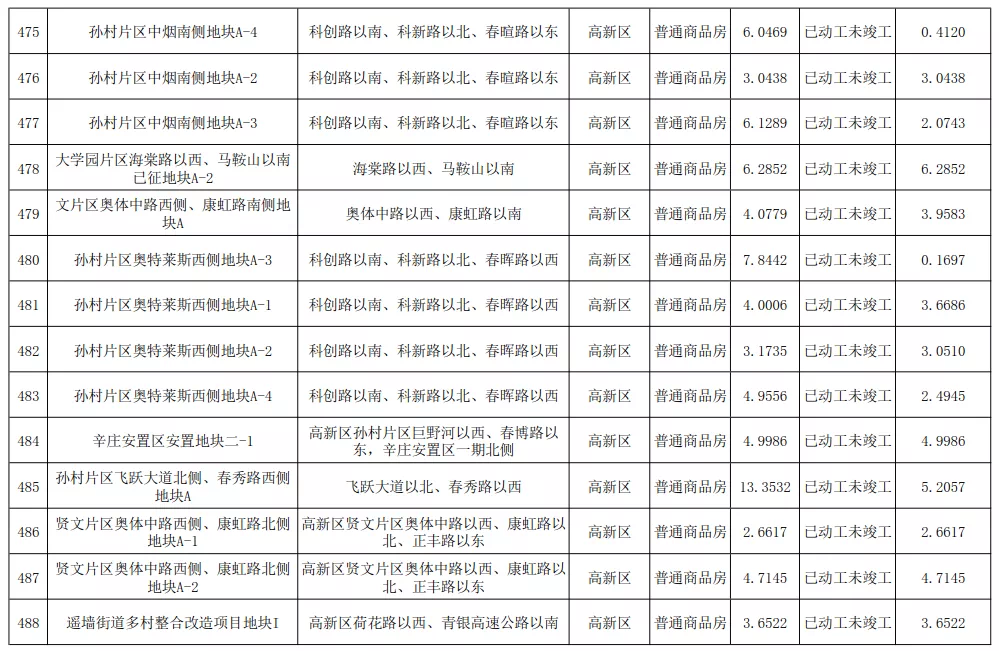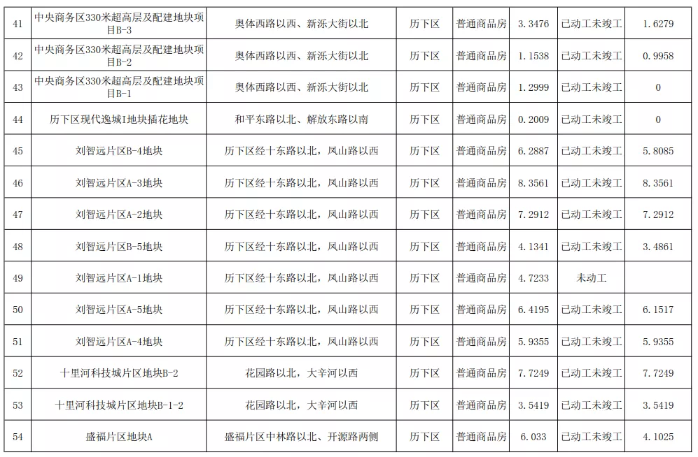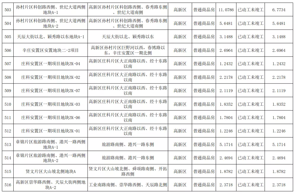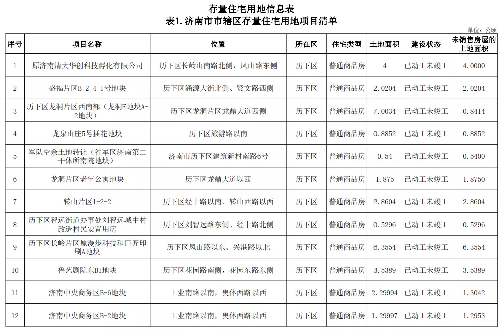 今日公布的存量住宅用地信息是截至2021年3月31日,共计941个项目,存量住宅用地面积4607.2973公顷,其中未动工土地面积1379.1511公顷,已动工未竣工土地面积3228.1462公顷,目前未销售房屋的土地面积有1900.0114公顷。