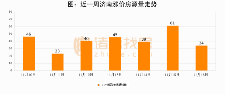 根据诸葛找房数据显示,济南24小时涨价房源量为34套,较11月15日减少27套,环比下降44.3%。与此同时,涨价房源占比小幅回落,对于购房者来说是一个入市窗口期,购房者可抓住时机入市。