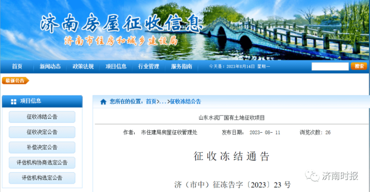 济南这两个片区征收冻结,具体范围公布