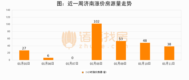 根据诸葛找房数据显示,济南24小时涨价房源量为38套,较05月10日减少10套,环比下降20.8%。与此同时,涨价房源占比小幅回落,对于购房者来说是一个入市窗口期,购房者可抓住时机入市。