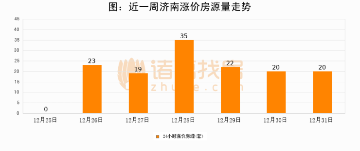 根据诸葛找房数据显示,济南24小时涨价房源量为20套,较12月30日持平。