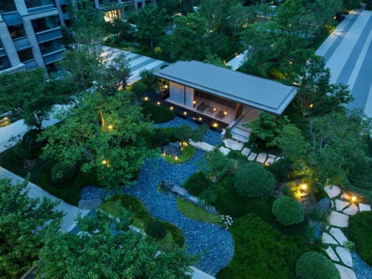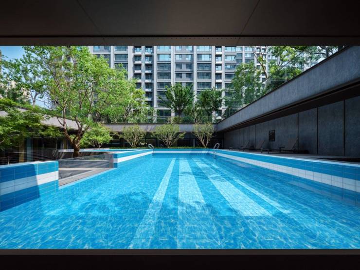【功能介绍】约6000㎡森居中庭、露天镜面泳池