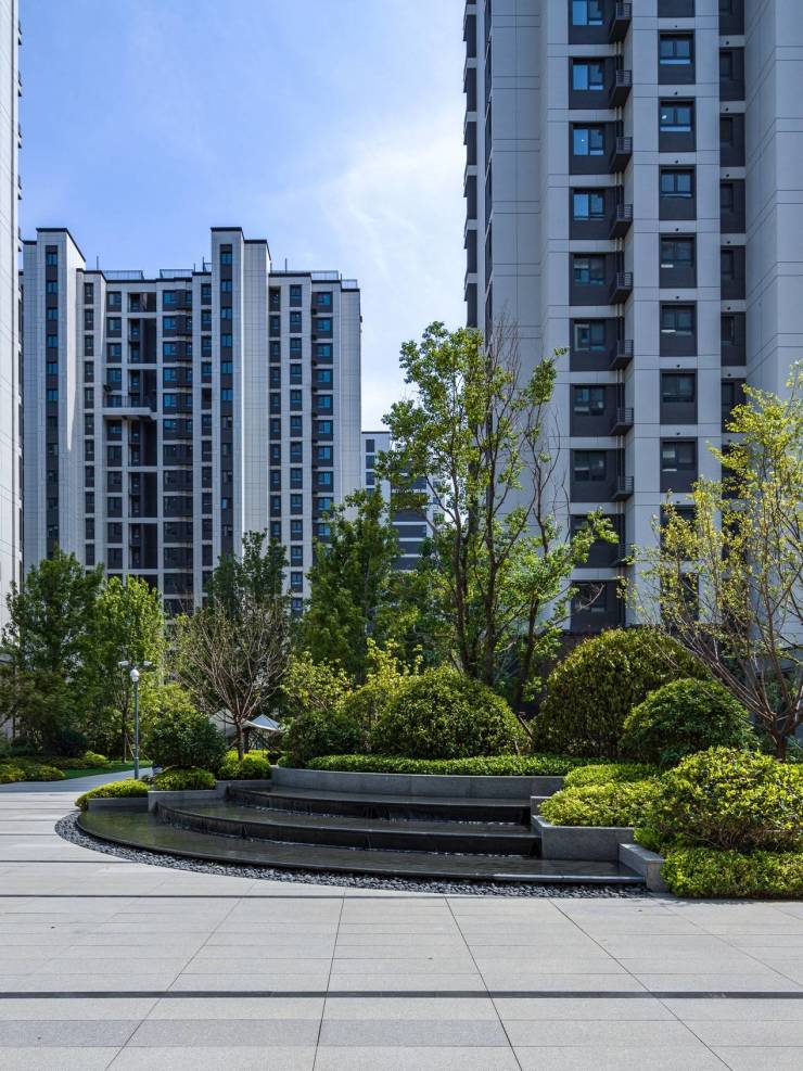 叠瀑水景,层层涟漪与花木相映,动静皆宜